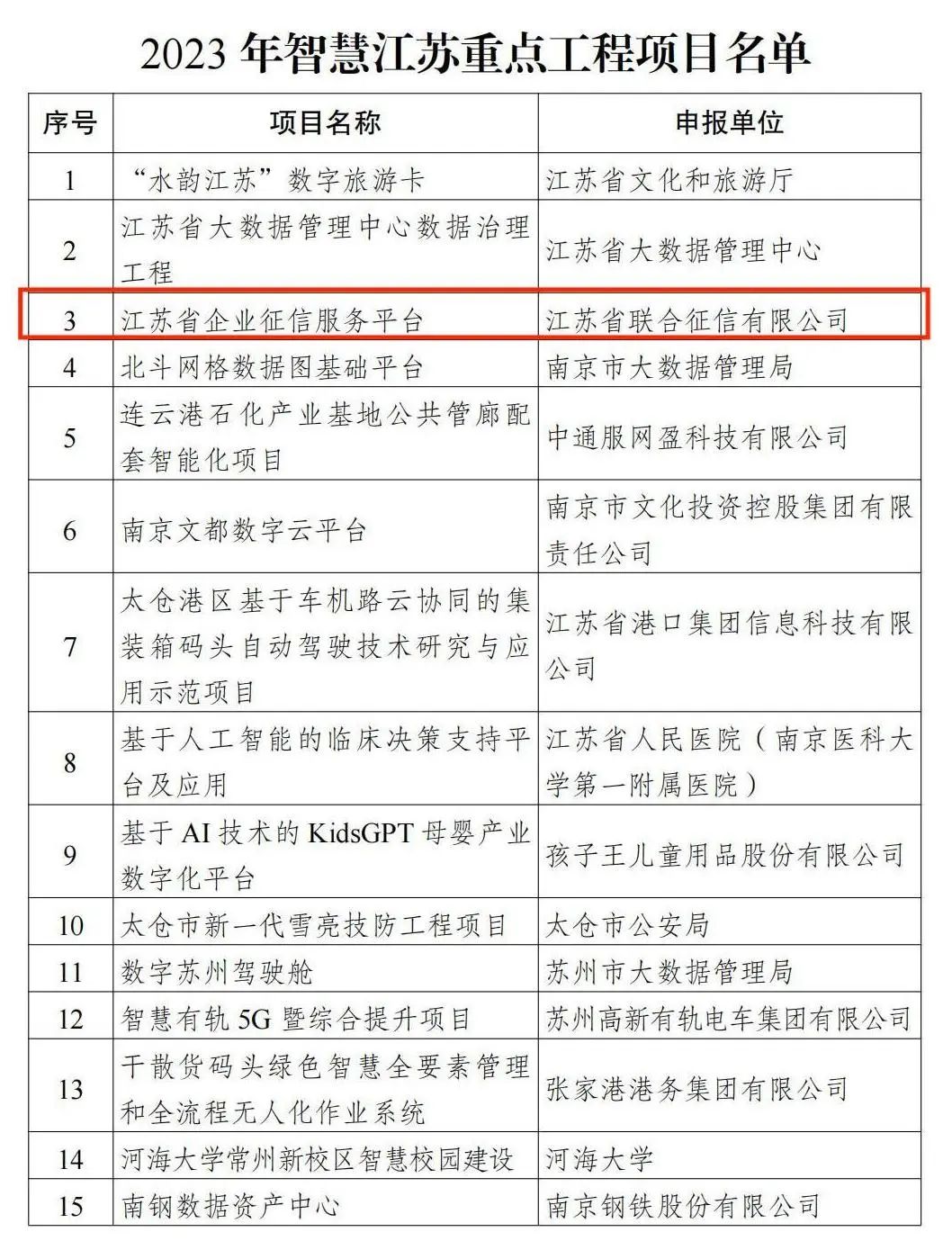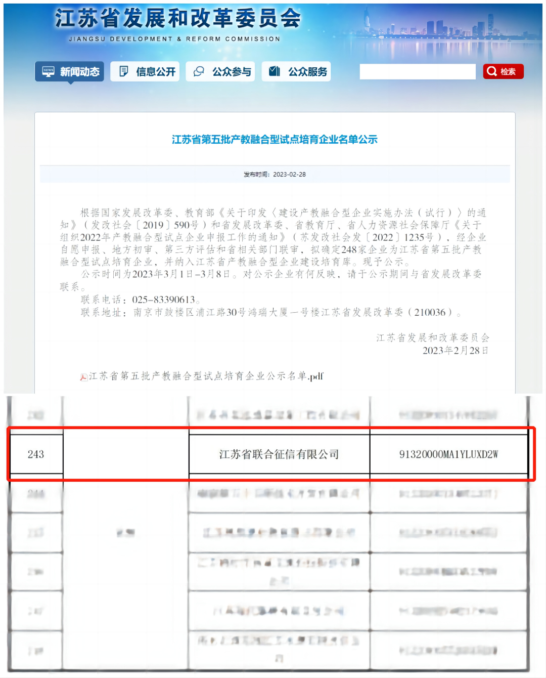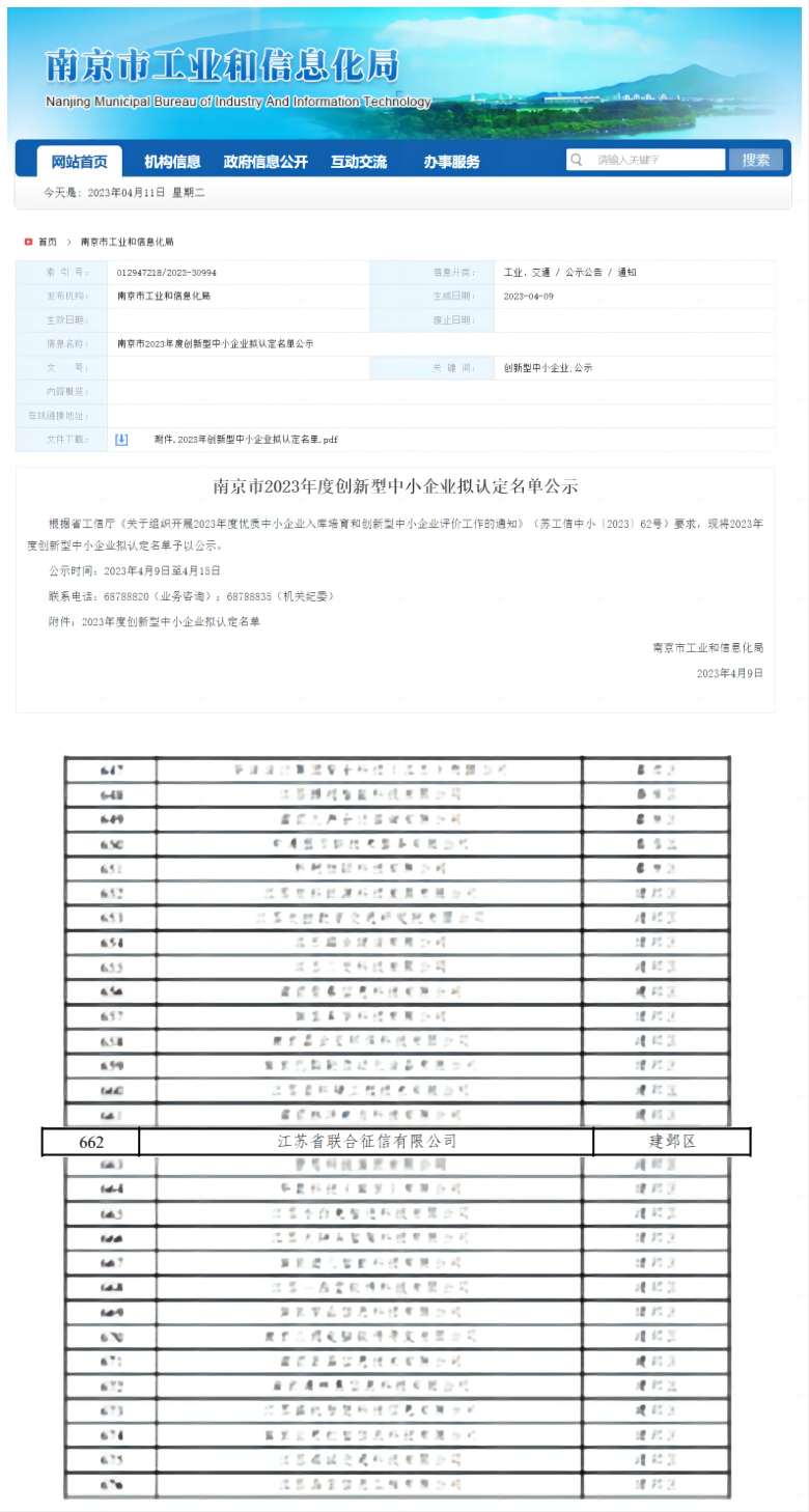 江苏省联合征信有限公司是经江苏省人民政府批准于2019年6月成立的省属国有企业,注册资本5亿元。根据省政府批复,公司由江苏省国资委列名监管,人民银行南京分行负责行业监管,江苏省地方金融监管局负责行业指导。公司于2020年获批人民银行企业征信机构备案资质、江苏省信用服务机构备案证书。 按照江苏省委省政府决策部署,公司围绕“一体两翼,双轮驱动”的运作模式,基于省联合征信公司主体,全面承担江苏省综合金融服务平台的技术支持和日常管理;研发建设省级企业征信平台,多维度归集企业信用信息,并提供征信服务;参与完善江苏省金融服务基础设施建设,服务各级政府、金融机构和中小微企业,推动金融服务实体经济发展。