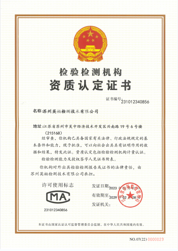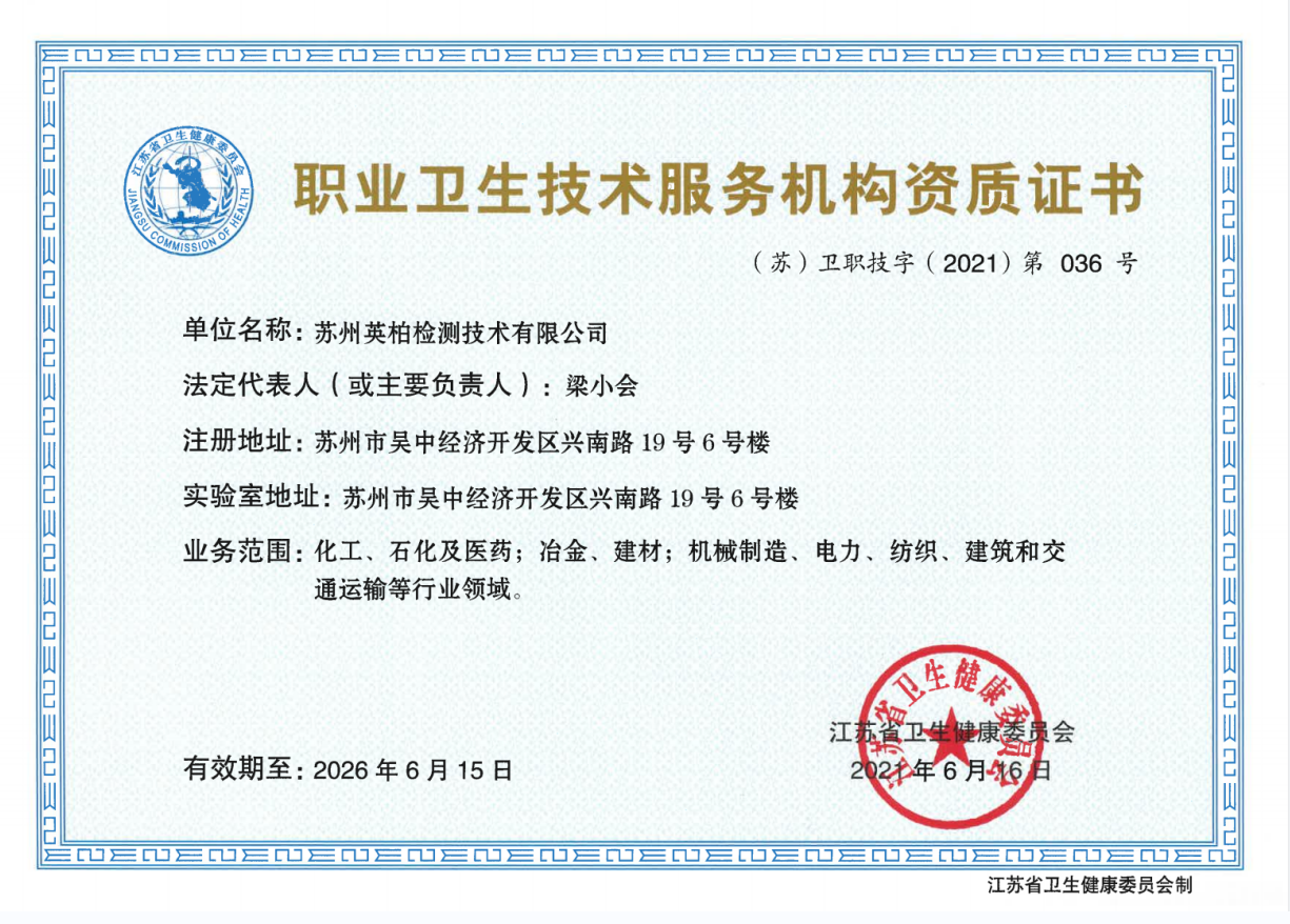 苏州英柏检测技术有限公司是专业独立的第三方技术服务机构,具备环境类CMA以及职业卫生类双重资质认定,可为政府、企业提供一站式环保和卫生技术服务工作。
