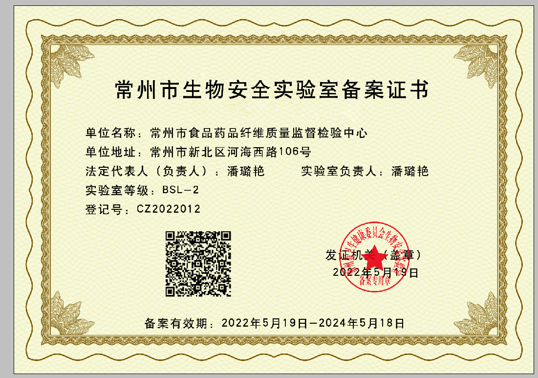 常州市食品药品纤维质量监督检验中心(以下简称“中心”)成立于2020年12月8日,为常州市市场监督管理局所属公益一类事业单位,是常州市执行国家食品药品纤维质量监督检验的法定技术机构,挂常州纤维检验所、常州市粮油质量监督检测站牌子。建设有中药检验实验室、化学药品检验实验室、食品检验实验室、纤维制品检验实验室、化妆品保健食品检验实验室、生物安全实验室、动物房、微生物检验实验室、PCR实验室等。主要的业务范畴为承担食品、药品、纤维及纤维制品、纺织品、粮油、医疗器械、药品包装材料、保健食品、化妆品监督检验、委托检验、快速检验、环境检测、业务技术指导、人员培训和服务工作。